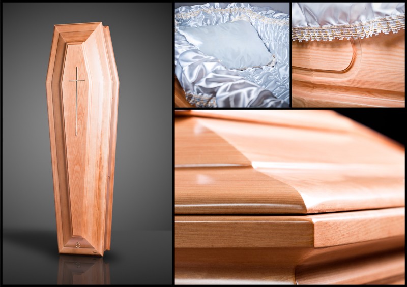 Il prezzo si intende per la Bara completa di accessori, incluso imbottitura, croce, targa, zinco e valvola di sicurezza (Con il Servizio Funebre questa fornitura e' Esente da IVA)