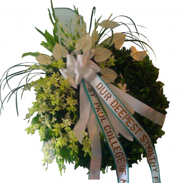 La Corona e' la Composizione piu' grande, di altezza circa 200 cm. con due basi di appoggio in castagno, in fiori semplici, sempre freschi, stagionali. Il costo e' incluso di preparazione e consegna in tutta la citta'.